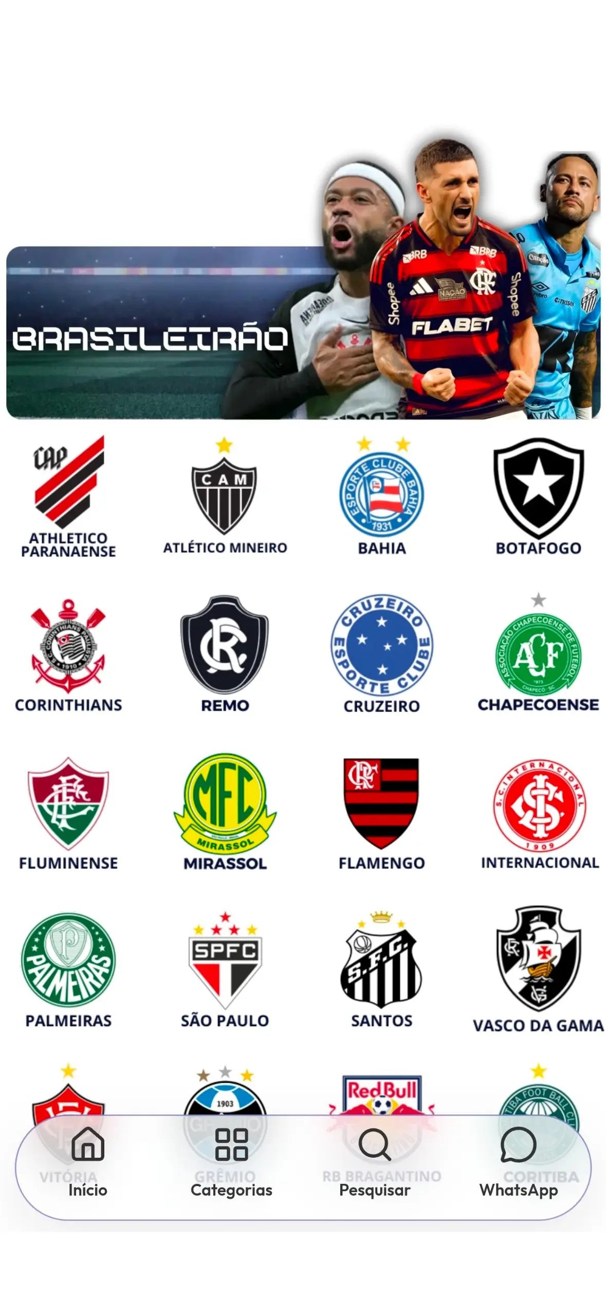 O maior catálogo do Brasil com mais de de 350 times dos principais campeonatos do mundo!